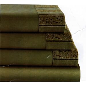 * Olive Green Sheet Set is made of 250TC 100% Cotton and is edged with matching border design.