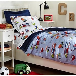 Pike Street 135-Gram Printed Flannel Sheet Set, On The Go Description